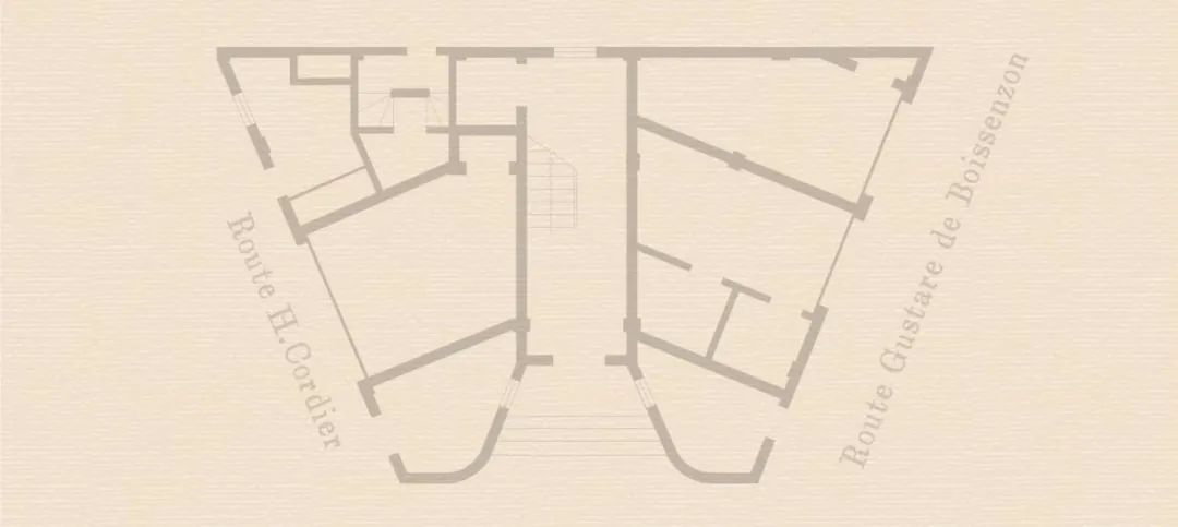 历史平面建筑沿道路转角布置,平面呈楔形。以楔端为构图中心,底层为入口,两翼向后逐渐扩展,利用阳台和平面的凹凸形成层次丰富的立面形象,以外凸窗户和半六边形阳台形成竖向线条,同时也构成现代居家生活必需的空间。立面造型简洁,外墙底层采用灰色水泥饰面,二至五层采用米黄色水泥饰面,墨绿色钢窗,阳台配有几何图案的黑色铸铁栏杆,腰线及女儿墙处采用造型简洁的装饰构件。平面功能布局科学合理,装修精致,设备齐全,室内通风采光良好。一层原为入口大厅、汽车间、辅助用房、商铺等,二至五层为一梯一户的四室户,房间功能明确,设备俱全,除了卧室、起居室、客厅,还设有餐厅、厨房,厨房边设佣人房、浴厕等,分隔墙和过道嵌有壁橱,垂直交通设主楼梯和辅助楼梯,分户门设门厅(玄关)。朝东的转角布置客厅,这里视野最佳,卧室安排在朝南的一侧,带有阳台,而餐厅和厨房则放在光线较差的北侧。室内交通上,为了避免产生主客同佣人服务流线产生交集,设计了两条通向室内各房间的路线,一条是主人可随意行走于各房间的流线,另一条是门外走廊供佣人使用到达各房间。