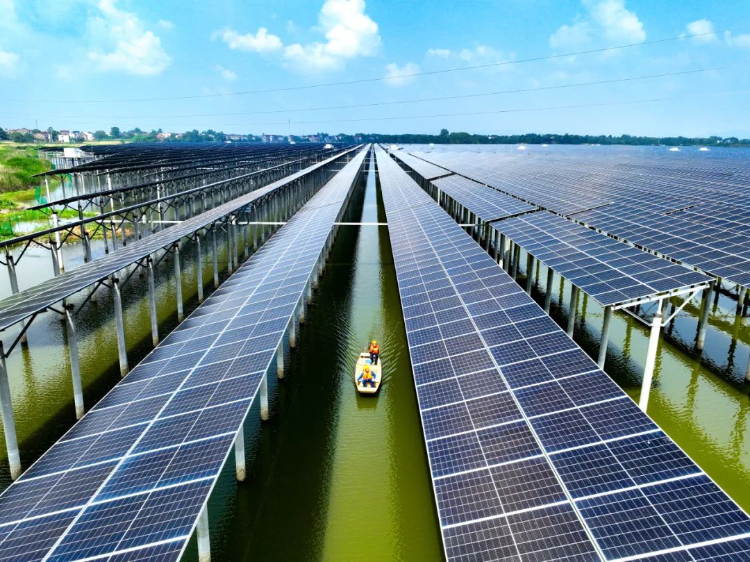 铜陵市陈瑶湖镇水网密度高,河沟纵横,湖沼广布,水域开阔,一方面,蕴藏了丰富的渔业资源,另一方面,为开展集中式光伏提供了绝佳位置。