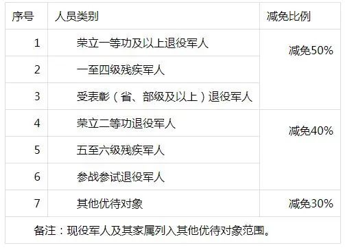 (上述优待对象不设户籍限制,优待对象在结算相关费用时需出具相应有效证件(证明),如退役军人优待证、“三属”优待证、残疾军人证、立功受奖证明等。)