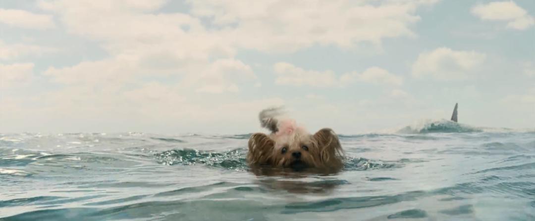 第一部结尾,那只从大鲨鱼嘴里逃生的小狗,在第二部里,同样出现了相似的情景。