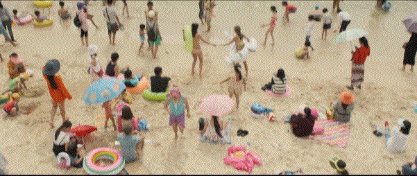 结尾的重头戏,鲨鱼袭扰三亚海滩。