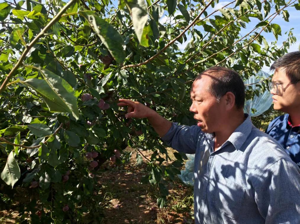村民姚仕平带领古田县青年干部“四下基层”实践活动班的青年志愿者到果园采摘。王 彬 摄