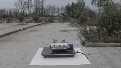 卡式炉气瓶罐体较薄,受外界压力或硬物碰撞容易破损,导致里面的丁烷气体泄漏,一旦泄漏再遇到明火就会发生爆炸。实验中,实验人员先把卡式炉点燃,在不关火的情况下把火吹灭,让气体泄漏持续10分钟,再远程遥控点火器点火,结果……