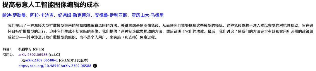 Hadi Salman 等,《 提高恶意人工智能图像编辑的成本 》