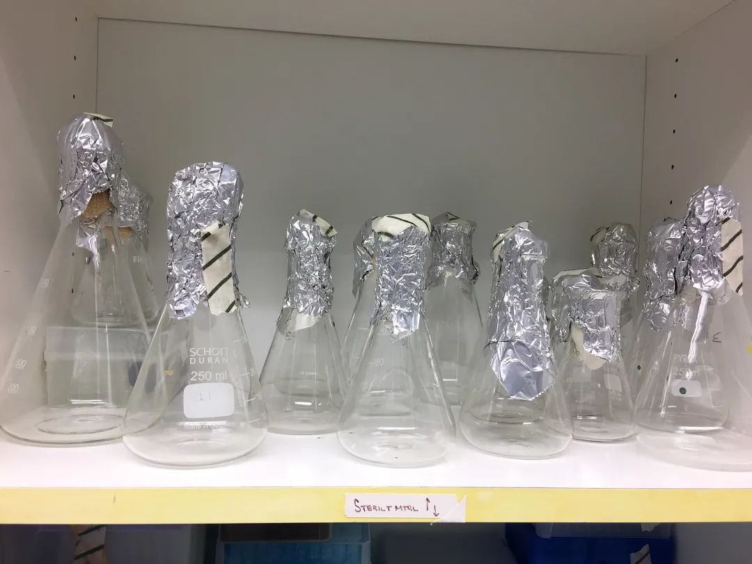 高压灭菌过的锥形瓶们。如果再来一次,我一定把锥形瓶放到加热器里蒸干 | Pilarbini / Wikimedia Commons