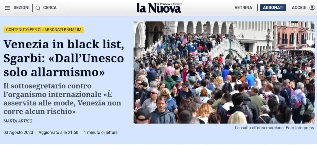 原标题:《联合国教科文组织(UNESCO)建议把威尼斯列入“濒危世界文化遗产”黑名单》