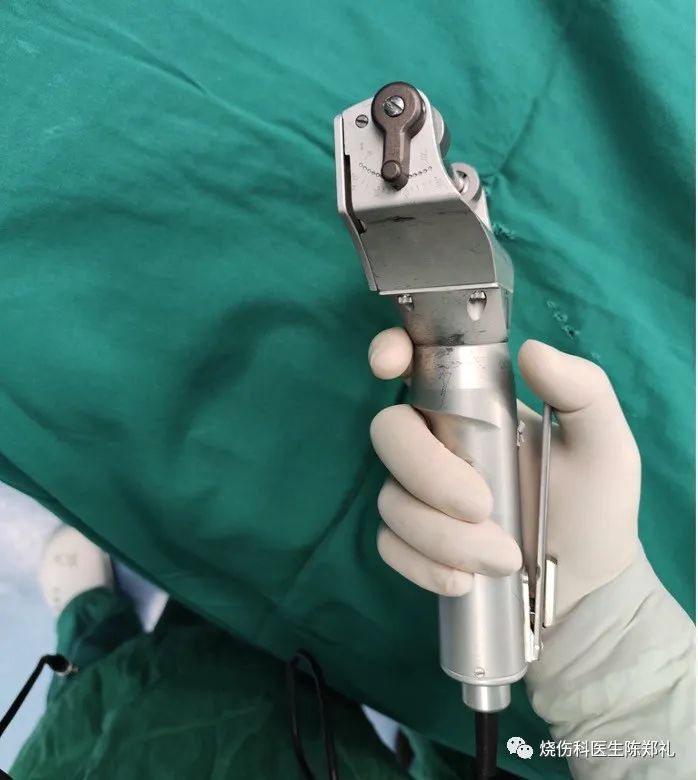 烧伤科植皮手术的必备器械,它其实是一把可以控制取皮厚度的刀。这个技术对术者的要求比较高,要取得好,需要娴熟的手法和数年的积累。就像削苹果的技术很多人都会,但是要削得薄、皮不断,并且宽度都要一致的话,并不是那么简单的事。很多老一辈的专家,都以出神入化的取皮技术而自豪,甚至有些会不愿意使用电动取皮刀,认为这是取皮功夫没练到家的表现。