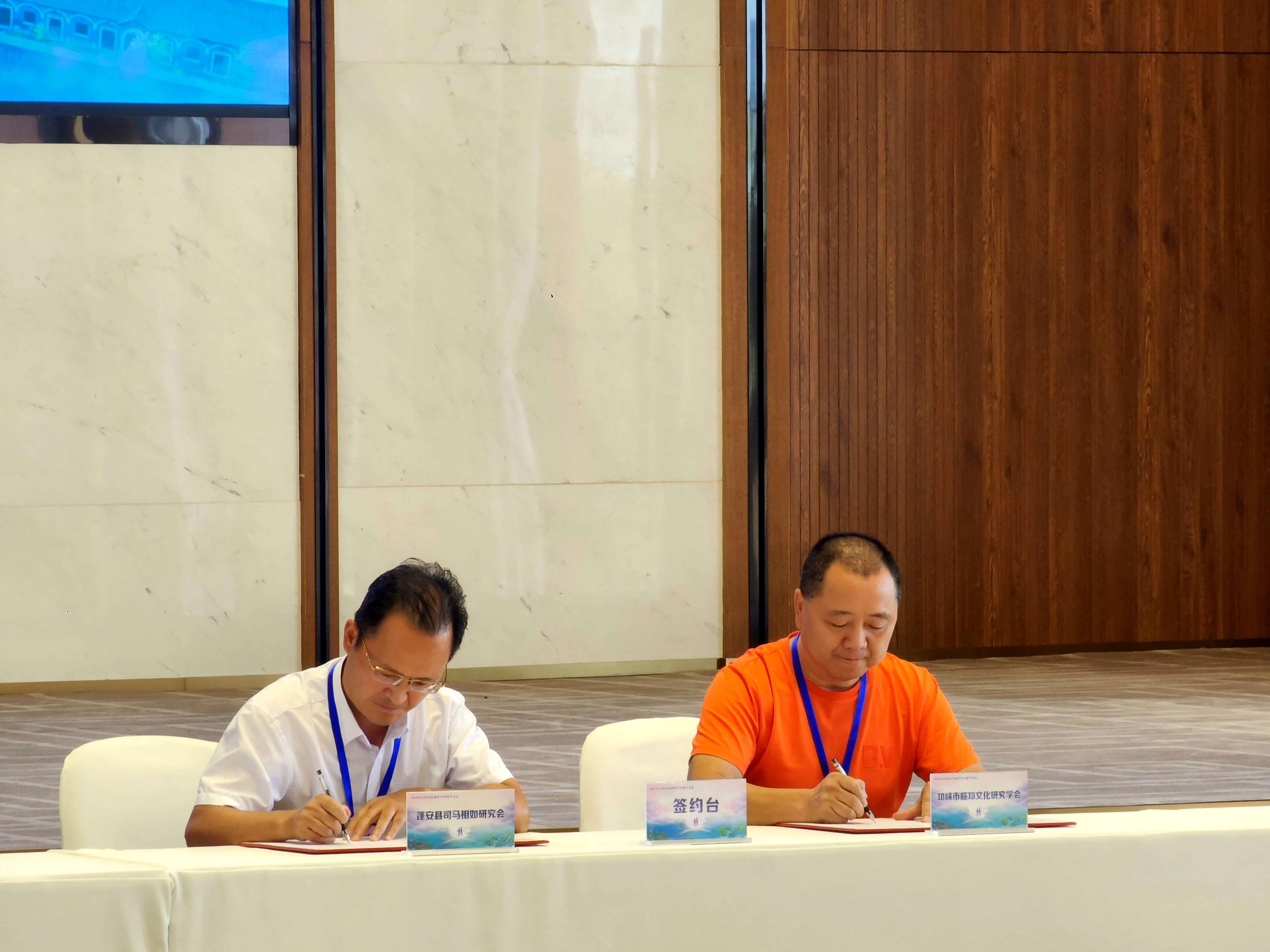 蓬安是司马相如故里,邛崃是卓文君故里。司马相如、卓文君两人共同演绎了爱情传奇故事“凤求凰”,为深入研究、弘扬这一中华爱情文化的千古经典,在当天的研讨会上,蓬安县司马相如研究会、邛崃市临邛文化研究学会签订了加强文化研究与交流合作的协议。