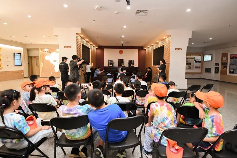南开法院与社区共同开设暑假普法小讲堂。孩子们认真聆听法官讲解的民法典普法知识,并开展“模拟法庭”趣味活动。