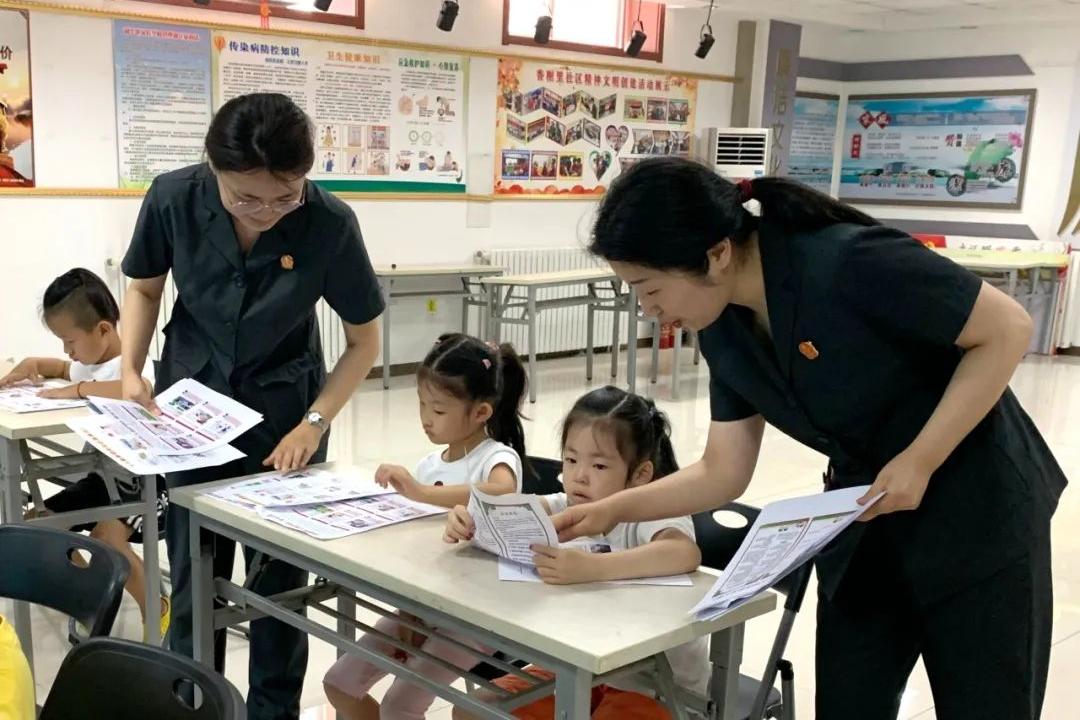 天津一中院来到社区,为孩子们带来一堂法治启蒙课。法官通俗易懂地讲解了暑期安全知识,配合宣传手册中的图片,强调在家庭中、学校里、出行时可能出现的危险,提高孩子们的自我保护意识。