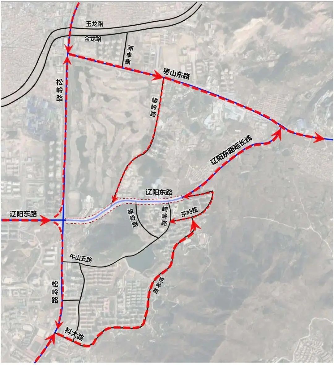 因2023年8月5日至2024年1月30日,辽阳东路(松岭路-午山馨苑东区三岔路口)市政配套工程施工,占据部分车行道、人行道。该路段仅允许车辆东向西单向通行。西向东途经的车辆,请提前绕行松岭路、枣山东路、午山五路等道路行驶。