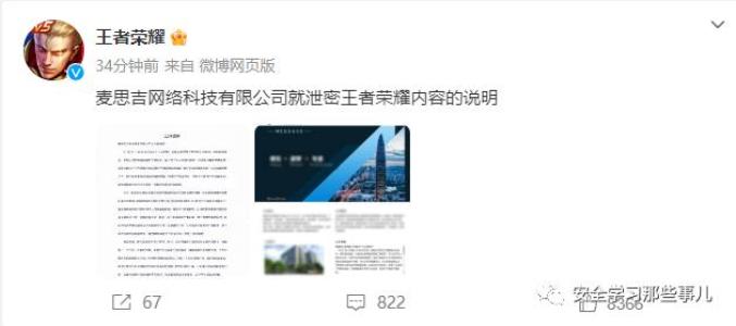 2023年8月2日,游戏内容被提前泄密是很多游戏公司头疼的问题,泄密的来源除了公司内部,还有第三方合作公司,即使有保密协议,依然有“头铁”的人冒险泄密。今日,《王者荣耀》官微发布“麦思吉网络科技有限公司就泄密王者荣耀内容的说明”。
