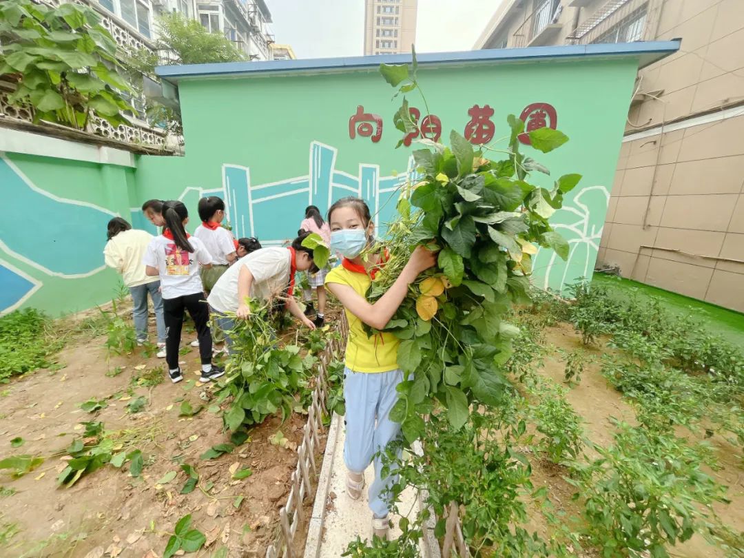 融合体育运动融合劳动教育。学校依托向阳苗圃开展以“四季瞳话”为主题的劳动实践,形成劳动教育校本化、定制化的“劳动+”课程,各班认领班级责任田,种植护眼食材,制作本草护目眼罩、明目汤羹,提高学生对“人与自我”“人与自然”的关注,学生劳动参与率达99.67%,其中每天都参与的学生达28.33%。