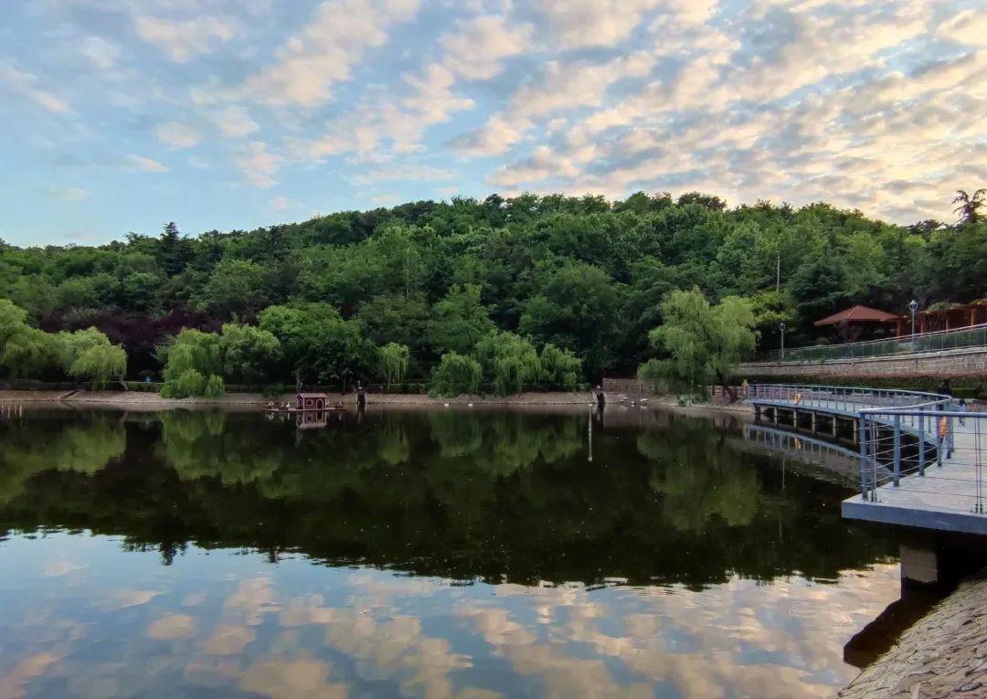 园内山峦起伏,绿色植被葱茏茂盛,湖水碧波荡漾,流水潺潺,沿着曲径通幽的小路,拾级而上,空气清新,非常适合周末去亲近自然、登高休闲、放松身心。