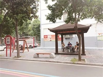 ▲居民在新增设的凉亭里纳凉在改造中,西工区把行署路13号院和招标办家属院、税务局家属院、六建家属院等11个小区统一进行规划设计,并拆除原先的围墙,完善服务设施,实现资源、空间共建共享,形成各小区连通新格局。