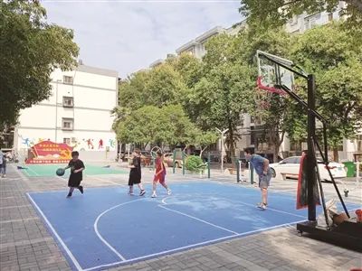 ▲居民在邻里中心篮球场打球“以前受客观条件所限,公共服务功能明显不足,现在我们努力补全。”行署路社区党总支书记王梅柯介绍,社区盘活闲置房产变为公共资源,整合原有党群服务中心、小广场、小游园,改建老年大学楼房,打造功能齐全的组团式邻里中心。