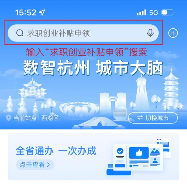 (2)浙里办APP搜索栏输入“求职创业补贴”。