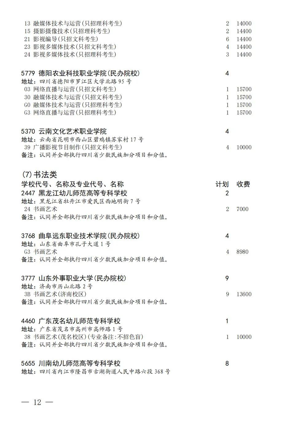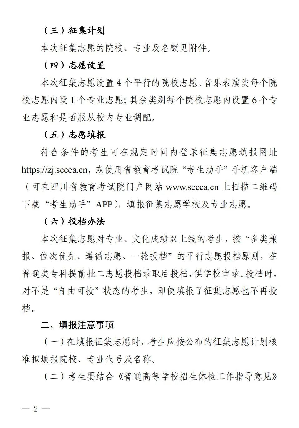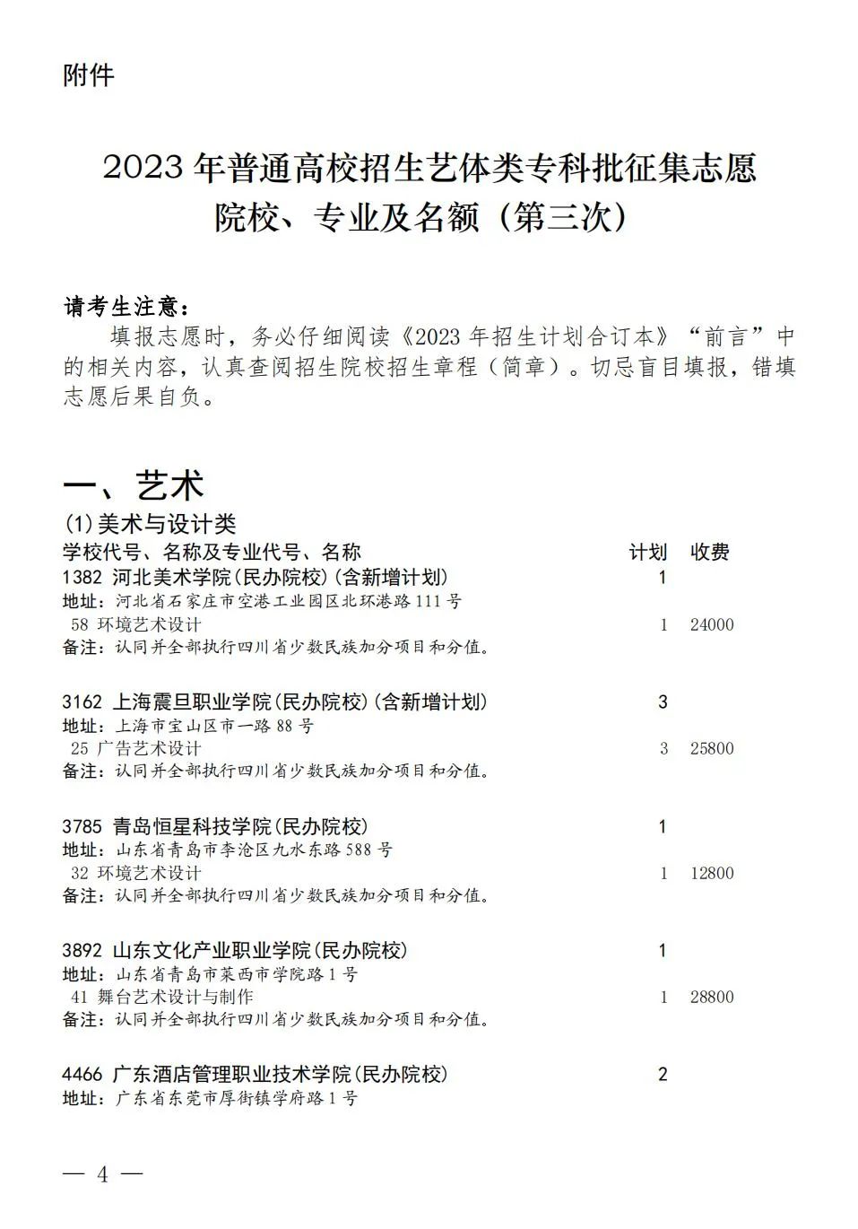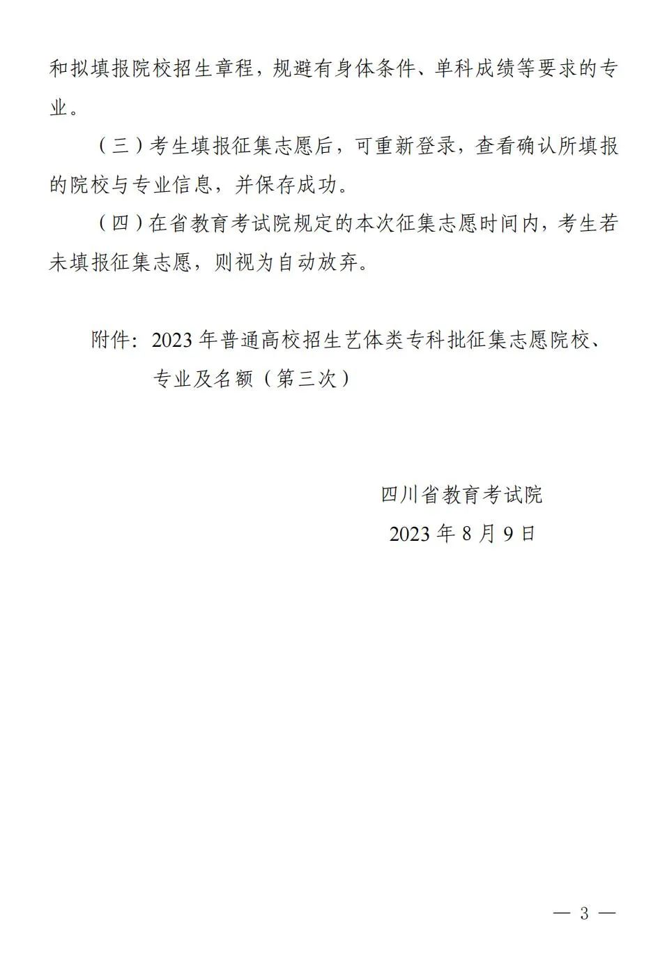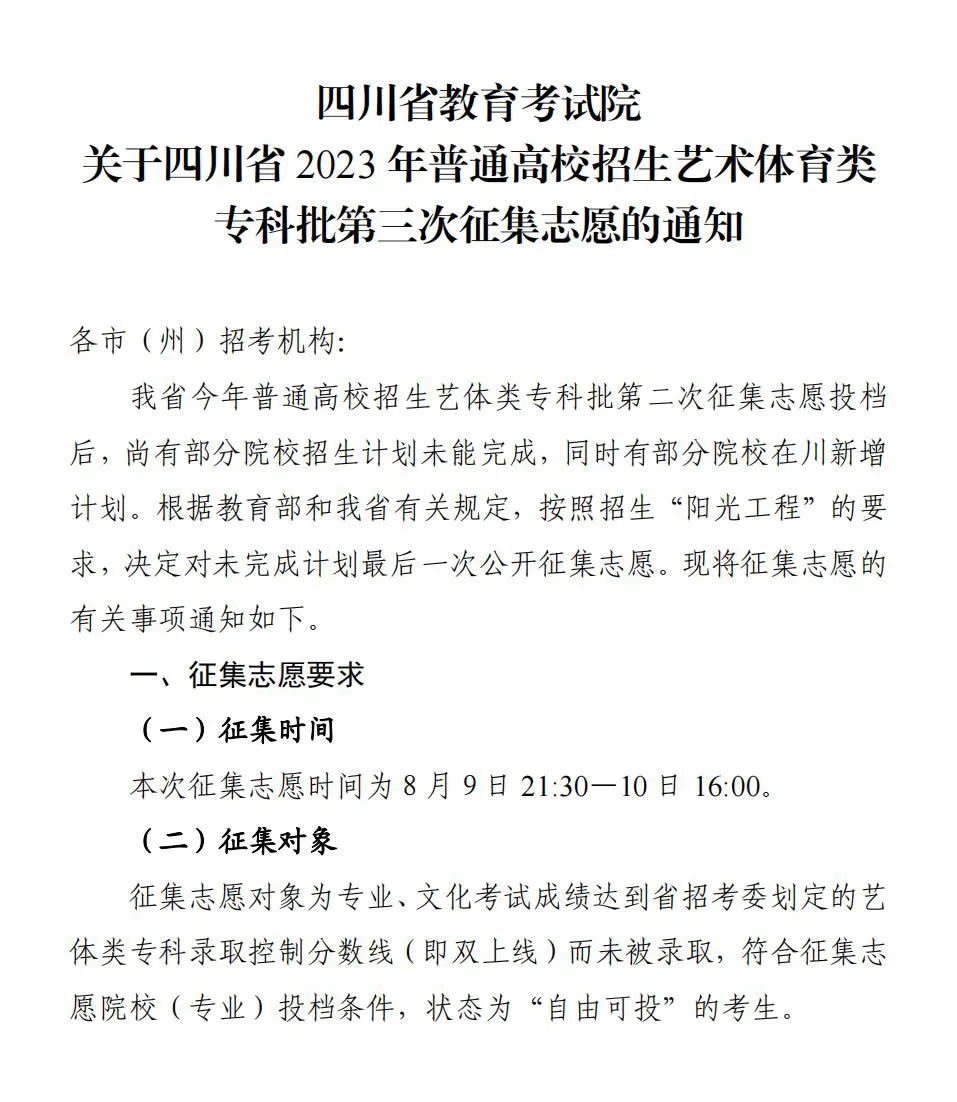 四川省2023年普通高校招生艺术体育类专科批第三次征集志愿