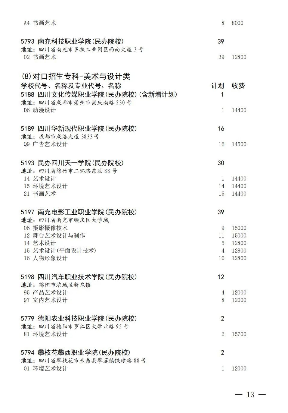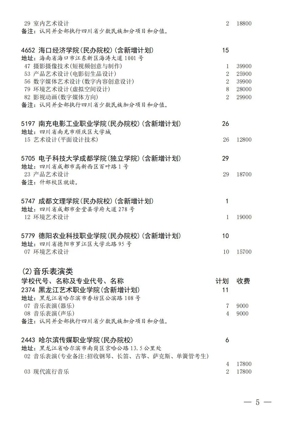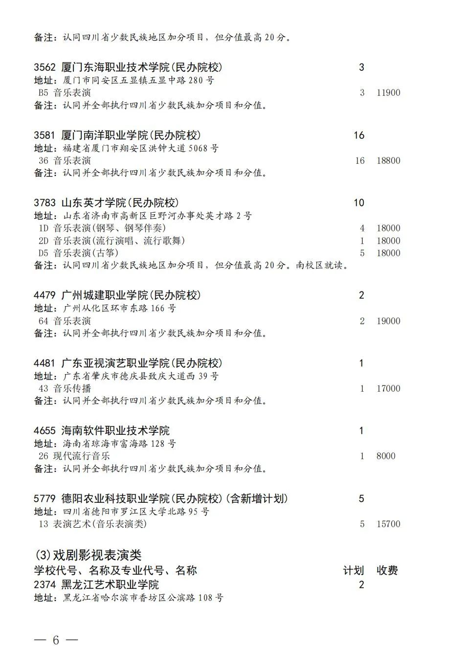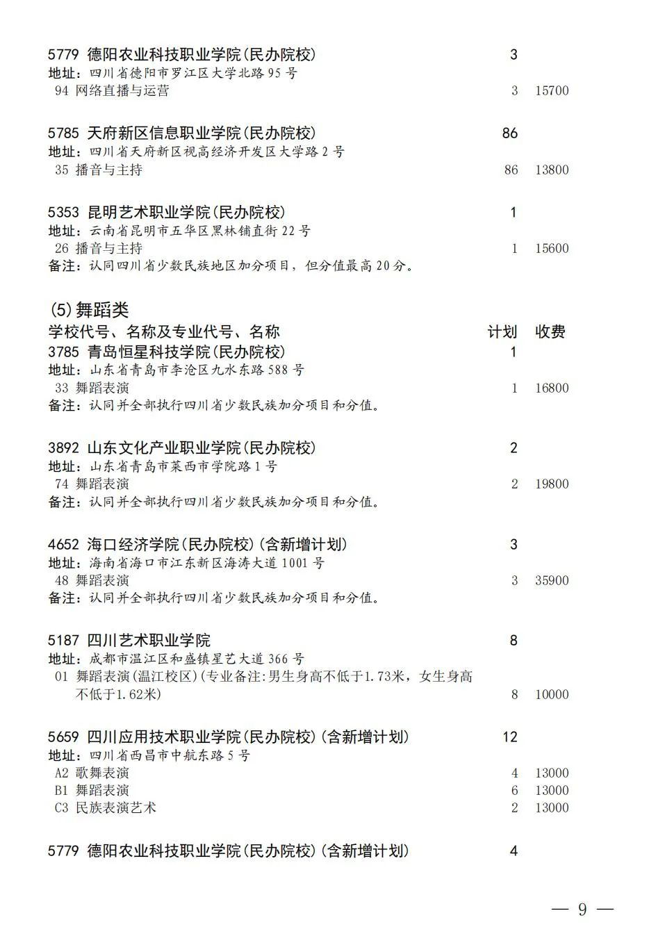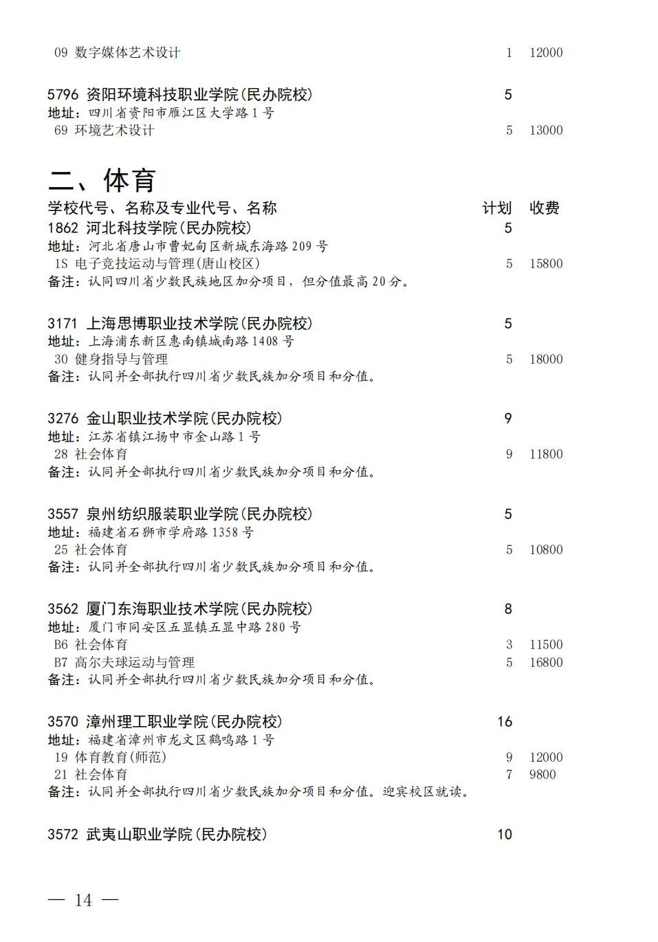 四川省2023年普通高校招生艺术体育类专科批第三次征集志愿