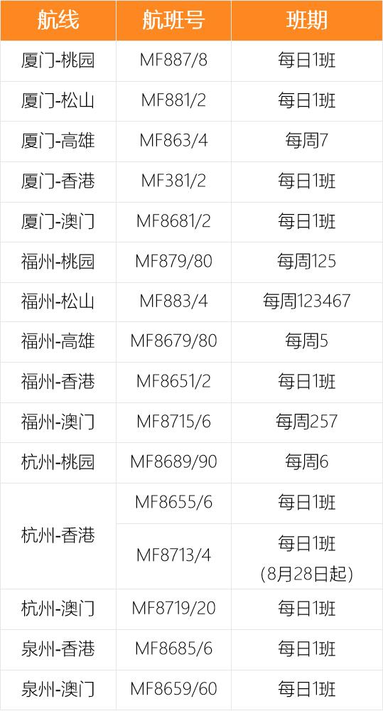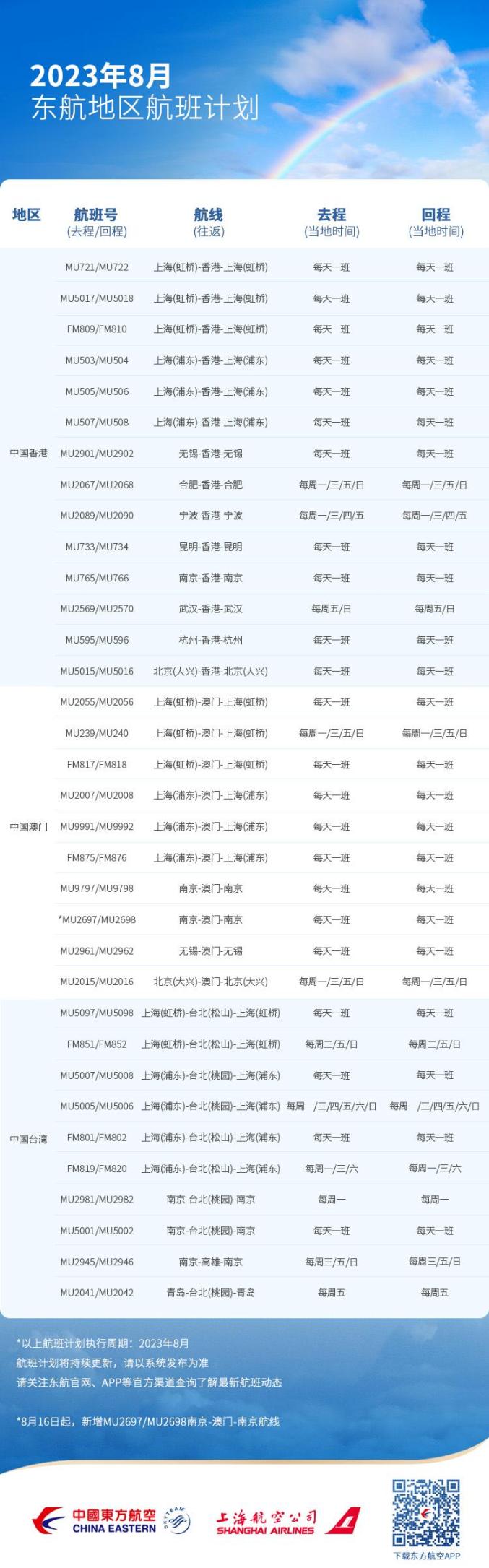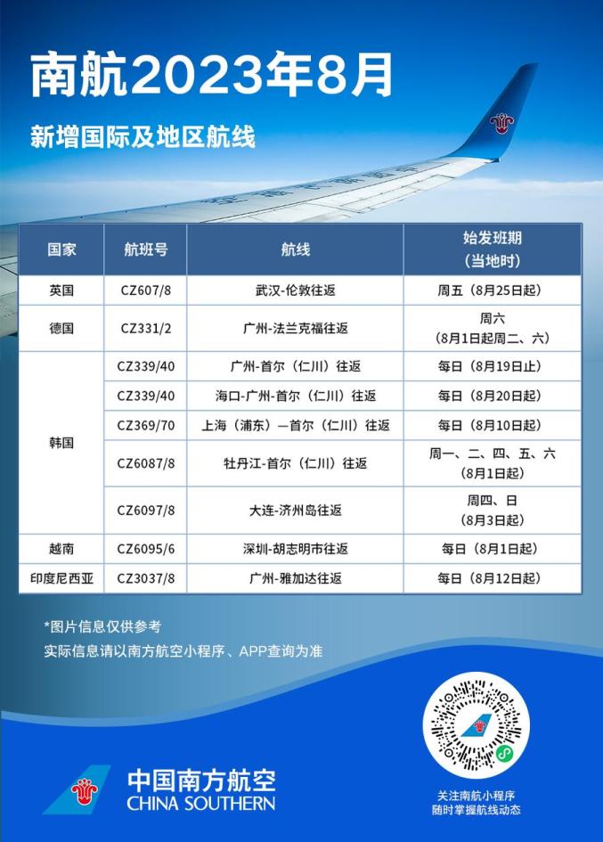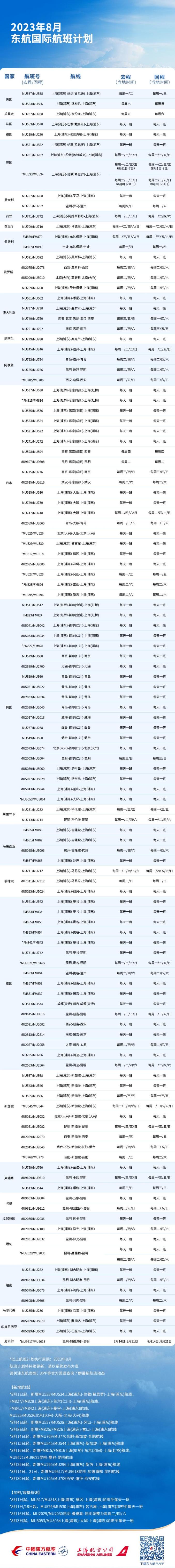 *以上航班计划可能有所变化,请以南航官网、APP、微信小程序等官方渠道实际查询为准。厦航2023年8月国际及地区航班计划