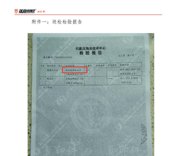 视频显示,该消费者在河北廊坊一家张亮麻辣烫门店内购入3盒羊肉卷,彼时店内工作人员告诉他,该产品是张亮麻辣烫指定的厂家统一配送,肯定是纯羊肉,还提出“假的管换”。但在其送检后却检测出,羊肉卷中有猪成分和鸭成分。
