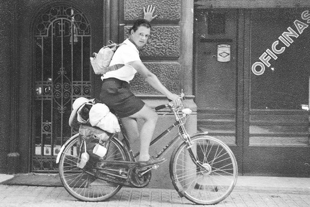 这张照片记录了德乌拉·墨菲(Dervla Murphy)于1956年开始的西班牙骑行之旅,它出自德乌拉·墨菲所著的《单车伴我走天涯》(Full Tilt)。自行车令女性的世界变得宽广,她们决心抓住这个机会。有些女性甚至骑行环游世界。但即使是那些就在当地公园骑行的女性,也不再理会这类固有的观念:女性是脆弱的,如果她们的经济状况良好且无须赚钱养家,那么她们最适合在家过那种体面、优雅却令人窒息的生活,整日就做些针线活或压制些干花来消磨时光。第一波自行车热潮中的女骑行者们固守着女性特质方面的约束性观念。虽然大多数女性为了消遣而骑行,但女性骑行被视为一种政治行为。为妇女争取平等公民待遇的妇女政权论者都热衷于骑自行车,这绝非巧合;对她们来说,自行车是女性主义的“自由车”。