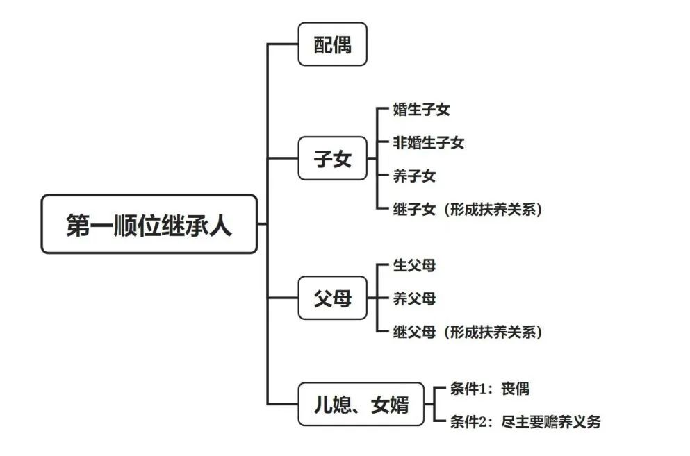 民法典第1129条规定,丧偶儿媳对公婆、丧偶女婿对岳父母,尽了主要赡养义务的,作为第一顺位继承人。