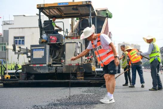 “夏季是摊铺沥青最好的季节,因为温度越高,沥青的粘合度就越好,一旦沥青稍微冷却就容易凝固变硬,达不到铺筑效果,所以我们必须要‘趁热打铁’。”刘正凯介绍,目前项目中修工程正在铺设沥青,每天出动摊铺机、胶轮和钢轮压路机、平板夯、运输车辆等机械车辆超20辆,施工人员70余人,分3个作业面同步推进。