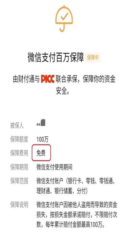 完全免费!当用户注册使用微信支付、支付宝、京东时,将自动免费开启“百万保障”,此保障为APP自带安全设置,用户不能自行关闭。