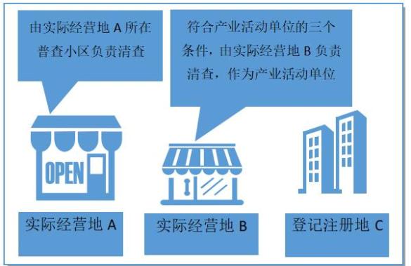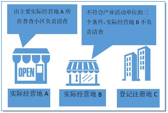 清查入户实际经营地B,发现该单位为一家咖啡店,调查发现该单位为实际经营地A的分店,且符合产业活动单位的三个条件,确定为产业活动单位。应由实际经营地B所在普查小区的普查员调查填报[621表]。