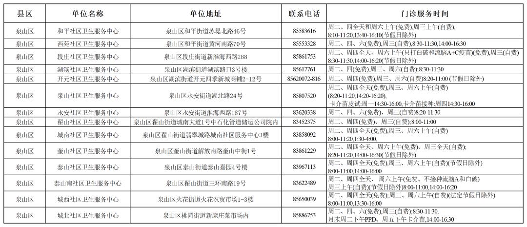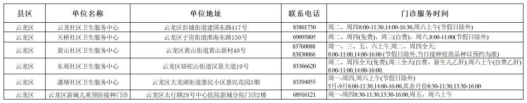 点击放大查看(PS:徐州市儿童预防接种单位为2023年2月更新,如有变化请咨询当地疾控部门)