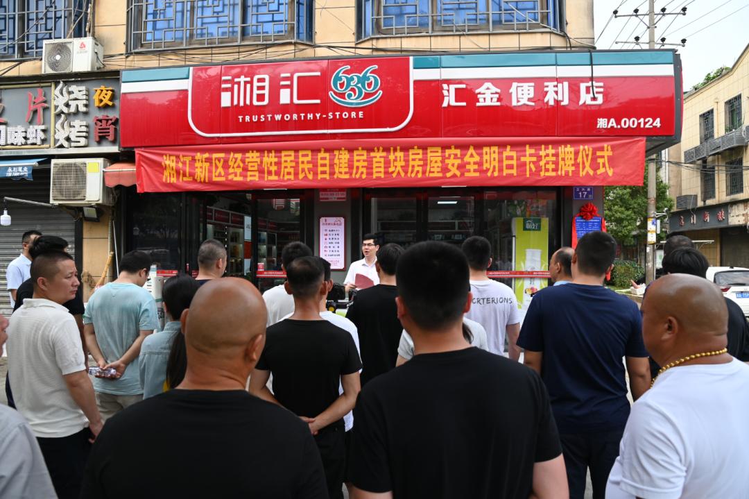 记者在现场看到,安全明白卡为铝制材质,长40公分、宽30公分、厚2毫米,四角打有圆孔;上面除了公示有房屋安全责任人、房屋建成时间、权证层数、现状层数、安全鉴定等级、鉴定时间等涉及房屋安全的关键信息外,还列有乡镇(街道)、村(社区)房屋安全管理监督人员姓名和联系方式。卡上还特别注明:“每个公民都有维护自建房安全的责任和义务,一旦发现房屋安全隐患或者危害自建房安全的行为,请拨打举报电话:0731-12345、0731-12350。”新区开发建设局(交通运输局)党组成员、副局长许望兴介绍,“房屋安全明白卡”是公示信息的直观手段,有利于让广大群众成为监督者,强化房屋安全监管。同时,鼓励居民积极举报对危害自建房安全的行为,共建共享新区房屋安全新格局。