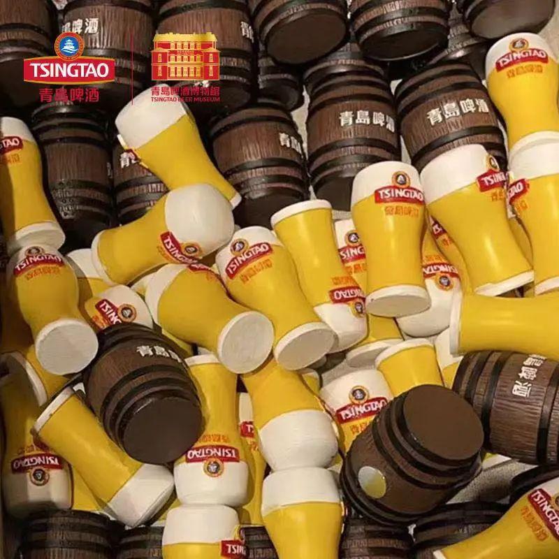 城市浮雕杯将青岛城市风景线刻画在杯身上,非常精致;各种啤酒创意冰箱贴,小巧可爱;还有啤酒花系列精油皂、海藻面膜等,青岛啤酒博物馆里超多文创产品可以挑选。