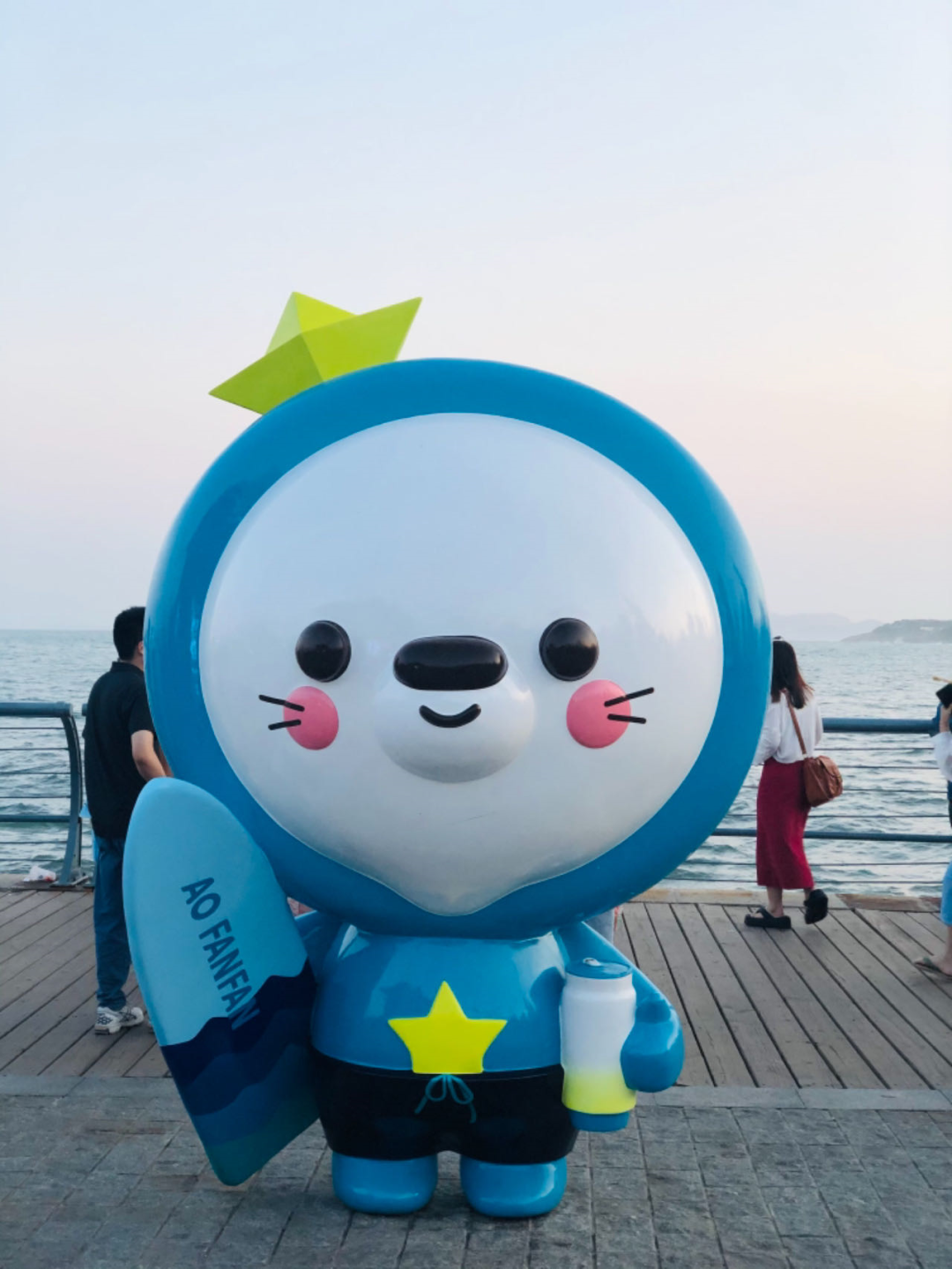 青岛奥帆海洋文化旅游区IP“奥帆帆”,是一只超可爱的蓝色小海豹,头顶一艘小帆船,萌化游人。