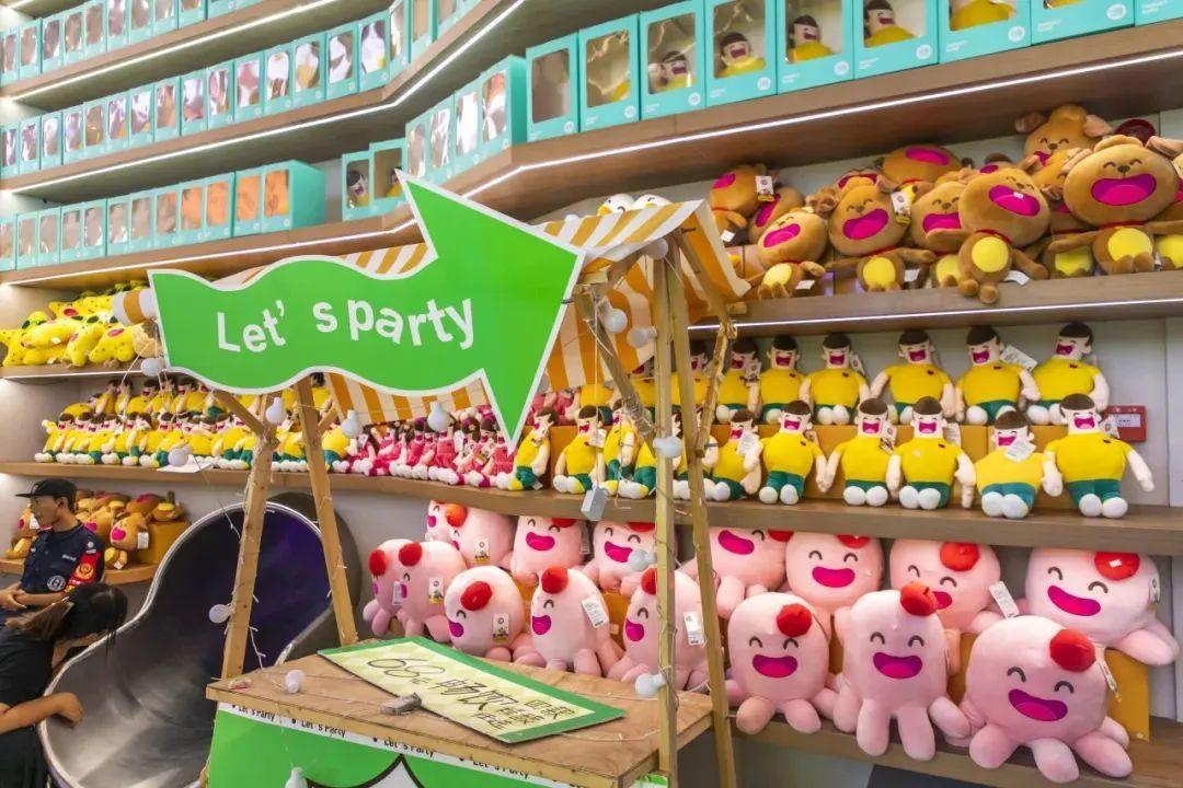 在金沙滩啤酒城哈舅及其衍生品的展销中心,分为毛绒玩具区、舅家好物区、DIY文艺展示区等区域,其中玩具盲盒、毛绒公仔等近千款哈舅文化衍生品应有尽有......可以满足游客的各类需求。