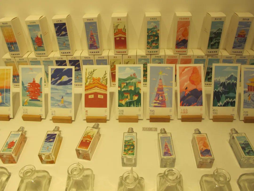 岛城礼物内各种关于青岛的文创产品特色插画、香水、香薰、挂件、徽章、明信片等,精致而充满创意。