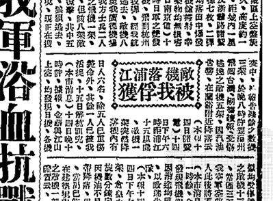 这是一架“九六”式陆上攻击机,机上原有敌方空军七人,六人已死,生俘飞行员恩地五郞,这是“八一三”淞沪战争开始后第一名日本空军俘虏。坠损的机身,及机上的遗物,如降落伞等,则移至浦江城内及金华,公开展览。