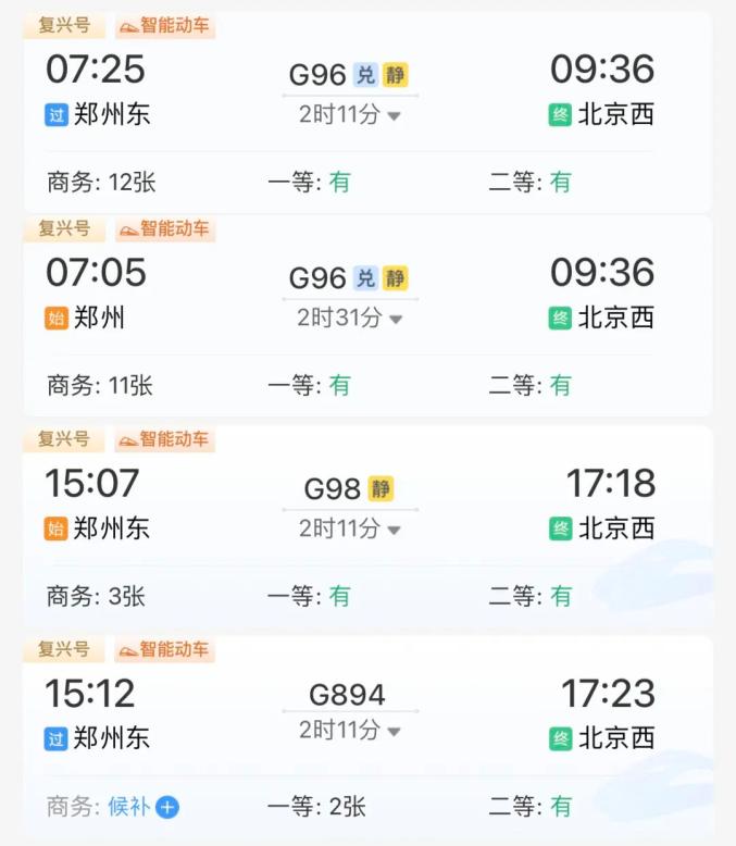 从郑州乘高铁出发