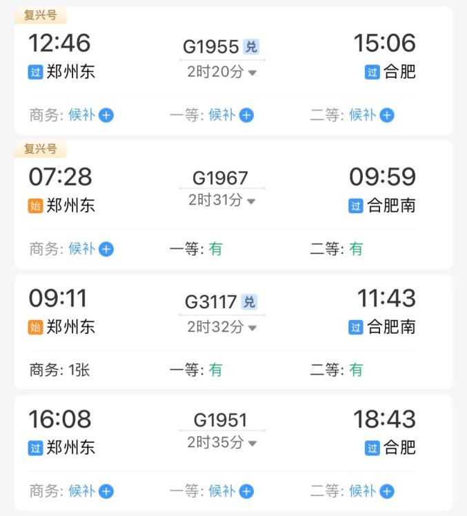 最快车次2小时20分到达合肥