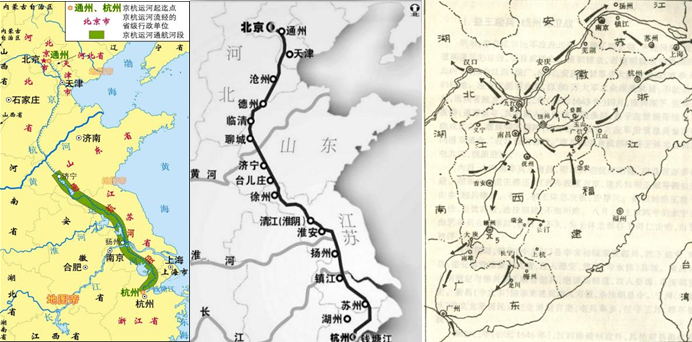 京杭大运河从北京到杭州南来北往,而要与广东相接,最便宜的水路是从扬州和镇江折转,溯江而上,进入鄱阳湖,沿着鄱阳湖入赣江。赣江溯流而上到了赣关,这有一个大瘐岭商道,翻过这个商道以后就到了广东省的南雄,南雄有一条水系,是珠江水系的北江(原称浈水)顺流而下来到广州。