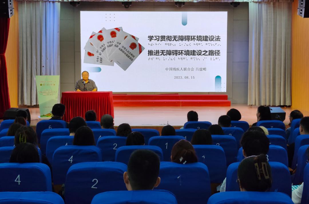 中国残联副主席吕世明作主旨演讲中国残联副主席吕世明作了题为《学习贯彻无障碍环境建设法,推进无障碍环境建设之路径》的主旨演讲。他以“向上向善无障无碍”开篇,深刻解读了《中华人民共和国无障碍环境建设法》出台的深刻意义,并以“五动”“六合”“七火”“八活”“九精”“十逢”六大模式,诠释了无障碍环境建设法具有的历史里程碑意义和时代价值,呼吁人人成为无障碍环境建设的推进者和共享者,从无障碍升级到无障“爱”,让无障碍的星火燎原。住建部标准定额研究所无障碍处介绍了我国无障碍环境建设的现状和问题,并针对《中华人民共和国无障碍环境建设法》中提出的具体要求和标准,提出了细心打造高质量无障碍环境的建议和措施。南京特殊教育师范学院专家则以数据为依据,从残疾人的数量、分布、类型、需求等方面,分析了我国无障碍环境建设的现实意义和紧迫性,并对《中华人民共和国无障碍环境建设法》中的重点内容和亮点条款进行了解读和评价。今年3月1日,《上海市无障碍环境建设条例》正式实施,现场,市残联权益保障处介绍了上海无障碍环境建设的发展历程和成就,并分享了上海在推进无障碍环境建设中的经验和做法。