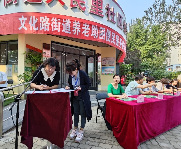 16日上午8点半,文化路街道人民里社区在辖区小广场举办了海港区首家养老便民餐车的启动仪式。现场,人民里社区与弄堂里餐饮管理公司签订了合作协议,这一项社区养老服务正式开始运营。