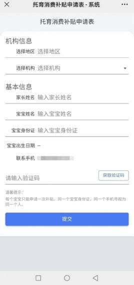 第五步:开始报名填写托育消费补贴申请表,提交信息,获得消费券;