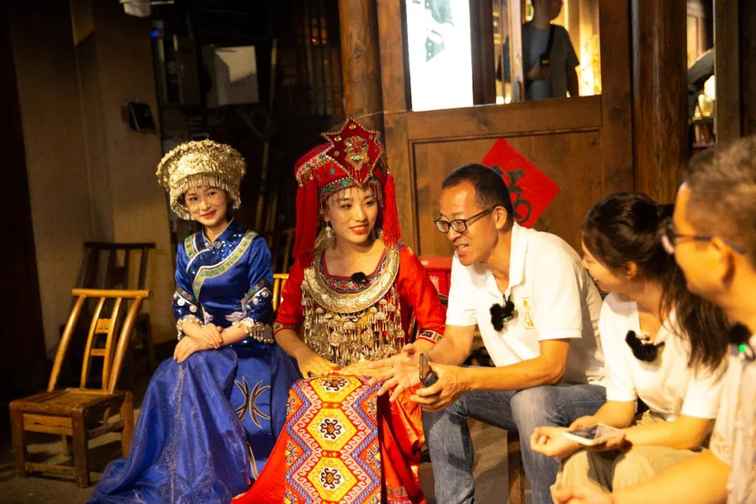 图/恩施土家女儿城景区团队第二站来到恩施女儿城,12位非遗传承人老师在此唱响《龙船调》。东方甄选团队齐坐火塘欣赏民俗表演。