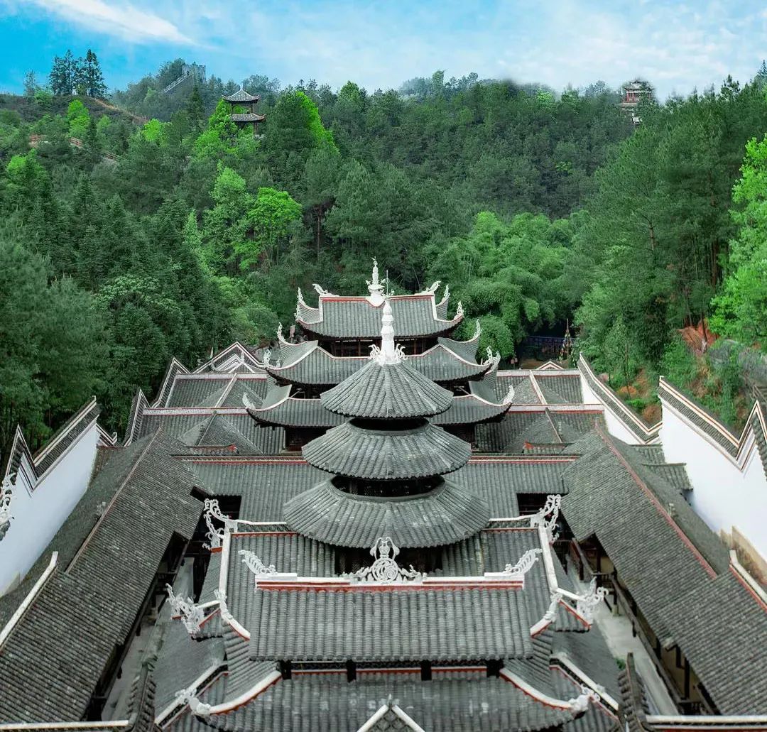 图/恩施市文化和旅游局整齐的楼阁和绿树错落有致,气魄宏伟的九进堂,为土司城更添一丝神秘的色彩。