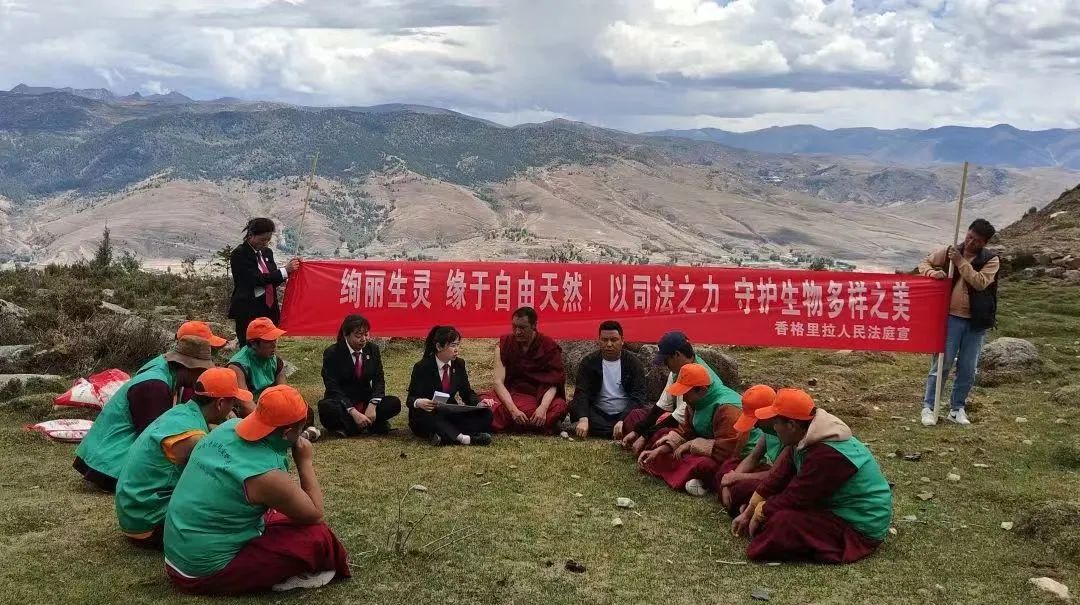 曾经的香格里拉镇,随处可见脏乱差,但现在景区环境越来越好,绿水青山变金山银山的画卷正在徐徐展开,当地群众的生活越来越富裕,来往游客的体验感越来越好,可见良好生态环境是最普惠的民生福祉,是人心所盼!在首个全国生态日当天,香格里拉人民法庭因地制宜,成立“志愿服务队”,充分发挥生态环境司法的社会指引、评价、教育作用,通过入村入户等宣讲方式,向群众宣传保护生态环境的重要意义,呼吁广大群众保护生态环境,鼓励公益组织、志愿者组织参与生态环境保护。号召群众行动起来,争当“宣传员”、“保护者”,动员大家主动检举、揭发非法猎捕、食用野生动物、乱砍乱伐等违法行为,严厉打击破坏生态环境的违法行为。