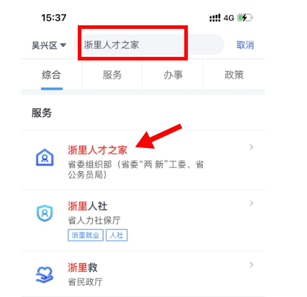 第二步:在软件上方搜索“浙里人才之家”