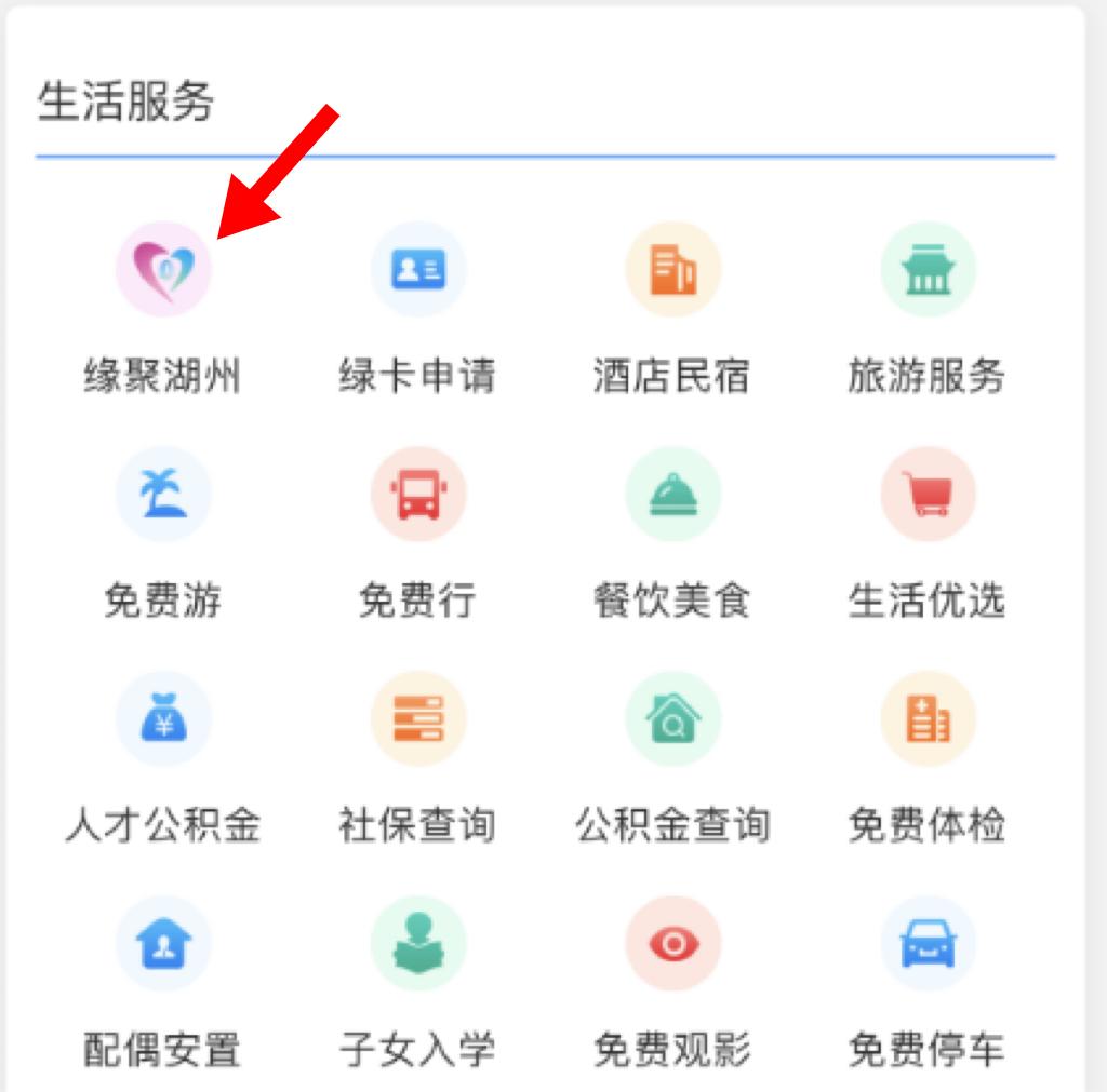 第四步:在“生活服务”栏目中选择“缘聚湖州”