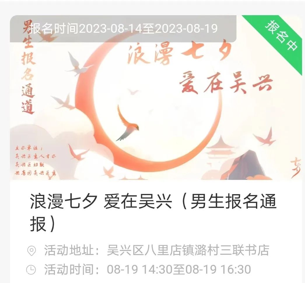 原标题:《“浪漫七夕 爱在吴兴”青年人才交友联谊活动报名啦!》