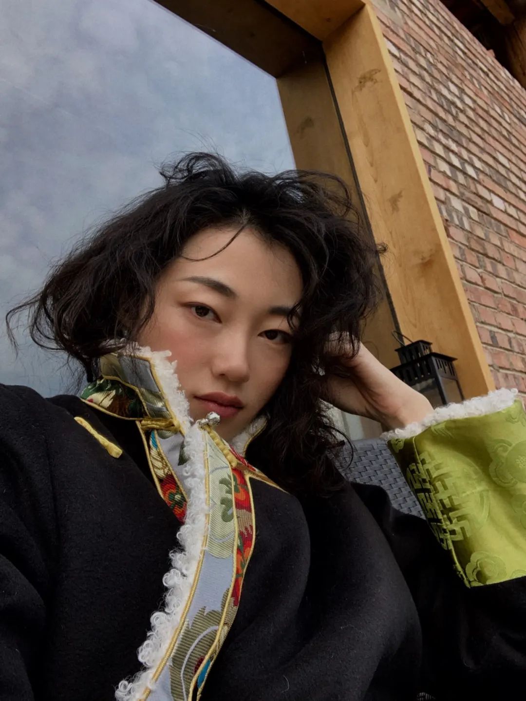镜头前的山雨,笑容明媚,眼波流转,眉目舒展,一头黑色的波浪长卷发与利落的姿态相互映衬。